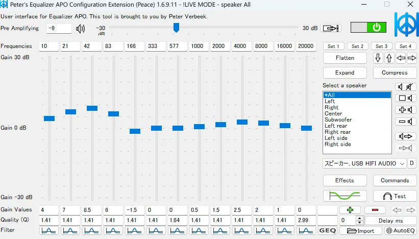 1周間ぐらい経った後、「Equalizer APO」を導入し、低音ブーストをかけるような設定にしてみたが、これがすごい。